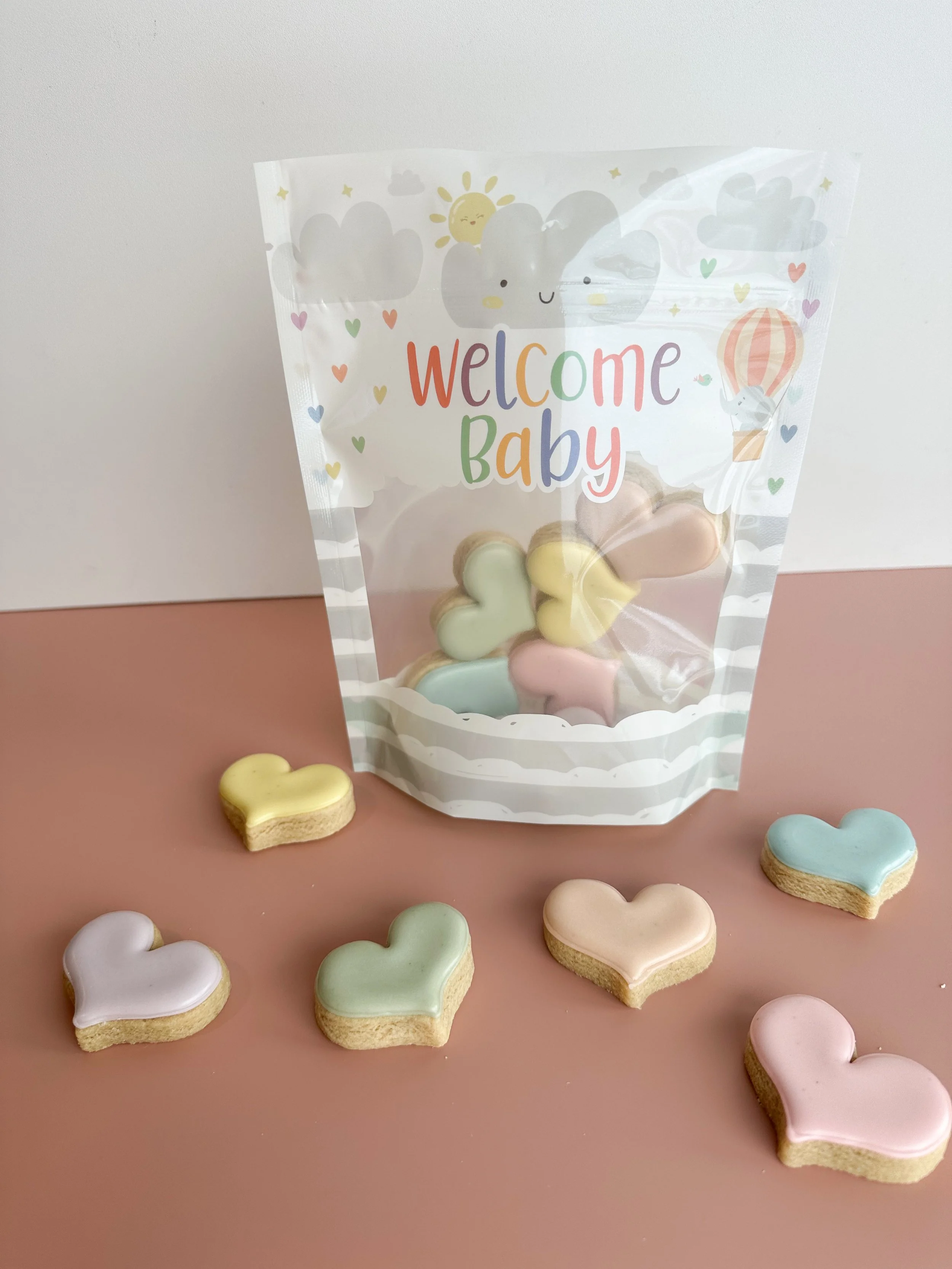 These adorable grab bags include 6 mini heart-shaped sugar cookies — perfect for hospital visits, baby showers, or proud grandparents.