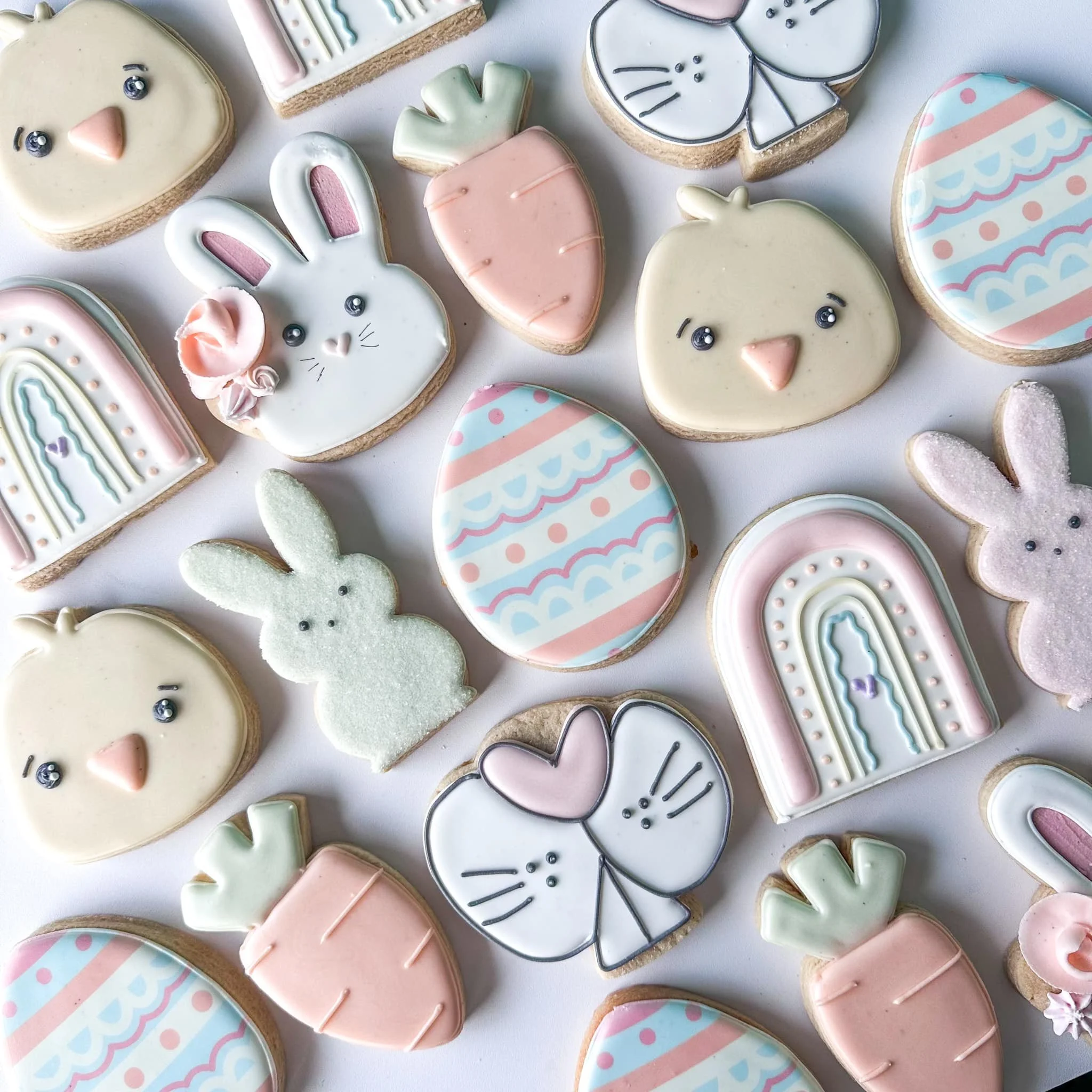 This listing is for Easter Themed regular sized cookies. Choose your quantity and we will reserve your cookies for you. Please note, the photo provided includes last year’s options and designs will vary. This is baker’s choice for the designs included in your pick up. Cookies are $6 each. Pick up 4/1-4/4 8am-12pm. All sales final.